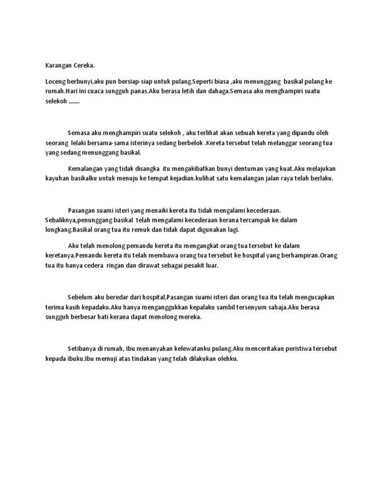 Karangan Jenis Cerita. 11 Contoh Karangan UPSR Terbaik Bahasa Melayu. Aku baru sahaja menerima berita sedih yang menimpa seorang guruku.