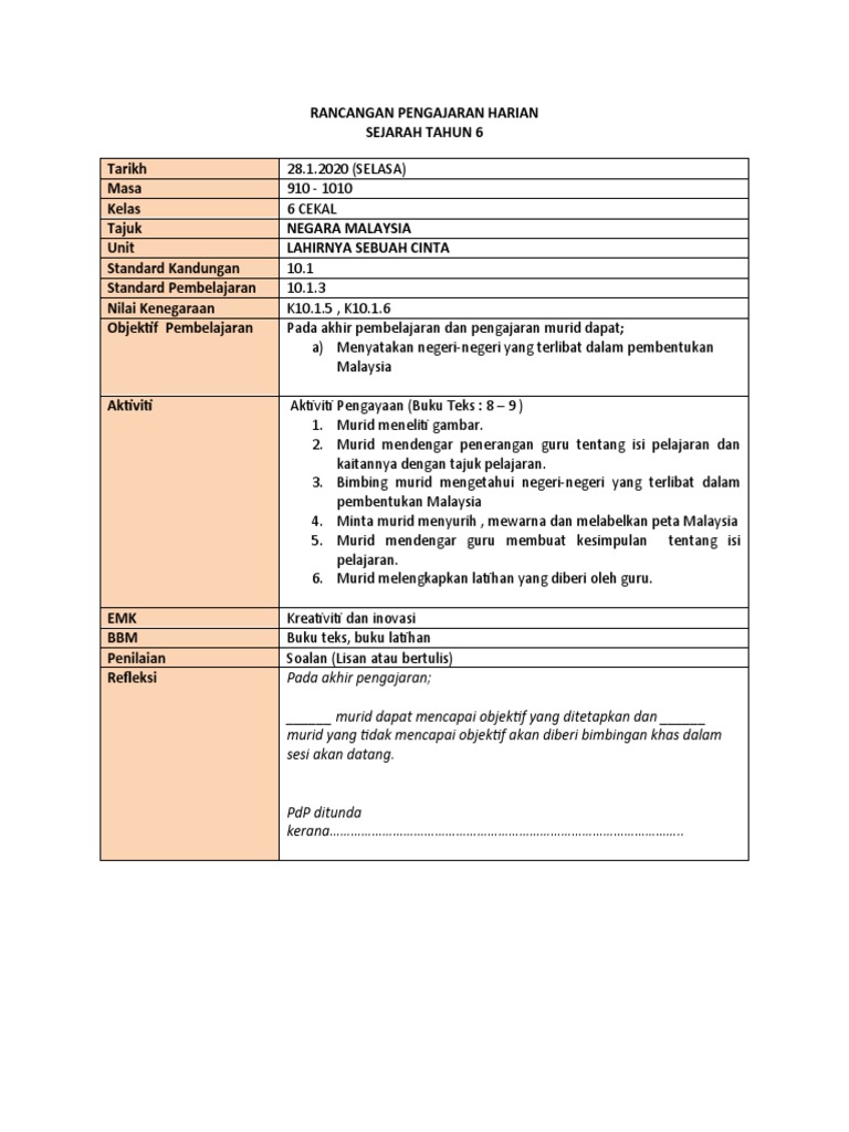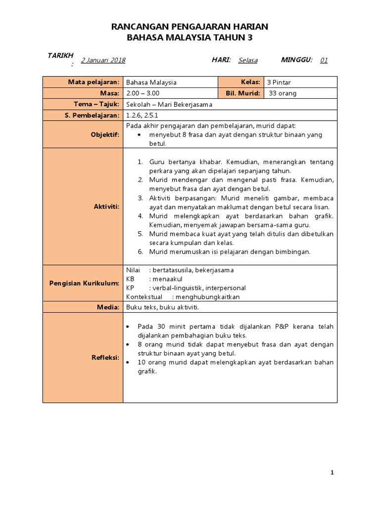 16 Berbicara untuk menyampaikan. RPH Bahasa Melayu Tahun 1 adalah Rancangan Pengajaran Harian yang perlu disediakan lebih awal oleh guru sebelum menjalankan sesi pegajaran dan pembelajaranRancangan Pengajaran Harian ini dibina sebagai panduan para guru untuk mengajar dengan lebih sistematik dan efektif serta mampu untuk mencapai apa yang. Jadi RPH tulis PENDIDIKAN SIVIK.